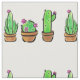 Tres bonitos cactus con flores rosas en pequeñas macetas de terracota - un divertido diseño suroeste. Añadir texto o modificar texto interesante.