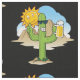 Personalizado de cactus sonrientes con gafas de sol en el paisaje desértico sosteniendo una taza de cerveza y dando pulgares hacia arriba. Color de fondo personalizado.