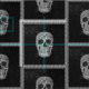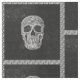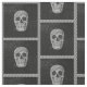 Cabeza de cráneo Tejido gótico negro y blanco grunge espeluznante tela de coser. Guay, material de diseño moderno, tenebroso y de diseño de patrones de arte de Halloween. Borde de textura gris alrededor de cada cuadrado. Derechos de imagen de Marg Seregelyi Photography.