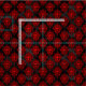 Este diseño de Halloween tiene cráneos rojos de sangre dentro de sofisticados marcos de inspiración gótica sobre un fondo gris oscuro/negro