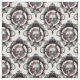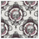 Este diseño de inspiración gótica exhibe cráneos sobre flores en marcos ornamentales sobre un fondo blanco.