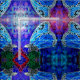 Las imágenes azules brillantes de la mariposa de monarca con color eléctrico modelan esta tela con un diseño enrrollado del caleidoscopio.