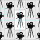 Un patrón de tela clásico, con un ilustracion digital de una cámara de película retro y trípode. Disponible en otras opciones. Visita nuestra tienda para ver más películas sobre la tela y otros accesorios para el hogar.