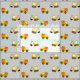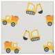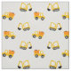 Los niños seguramente 'cavarán' esta tela de vehículos de construcción. Presenta un camión de basura y un patrón de cargador delantero en naranja amarillo de construcción, y negro.