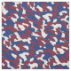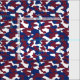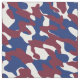 Un patrón de camuflaje en burdeos, azul y blanco.