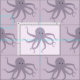 Tela con un patrón de ilustracion de pulpo, morado y sonriente sobre un fondo morado más claro.