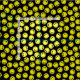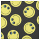 Las caras amarillas de la emoji en esta tela tienen ojos azules. El diseño tiene un fondo negro que se pueda modificar para requisitos particulares a cualquier color que usted desee.