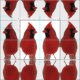Un modelo abstracto de los cardenales brillantes del rojo carmesí adorna este diseño precioso de la tela. El cardenal septentrional es verdad un pájaro hermoso.
