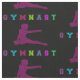 Tejido de letras coloridas de gimnasta con un chica haciendo una pose para el suelo de gimnasia.