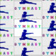 Tejido de letras coloridas de gimnasta con un chica haciendo una pose para el suelo de gimnasia.