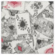 Cartas de juego dispersas ~ razas, Rey, Reina y Jack. Originalmente dibujado con tinta. Archivo de patrón de repetición de media caída para tejido, no dude en ajustar la escala según sea necesario.