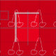 El cerezo encima del adorable arte de cerezo con un diseño de cerezas blancas en un fondo rojo cereza. Diseño moderno y cuidado con una estética sencilla. ¡Fruto!