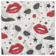 Chica de Moda Alta Retro - patrón divertido de labios rojos, zapatos altos de tacón negros, gafas de sol, esmalte rojo de uñas, copas y salpicaduras de pintura, estrellas y pinceladas. Todo en rojo negro y gris - puede elegir cualquier color de fondo que desee para este diseño eligiendo el botón personalizar y luego el color de fondo impreso