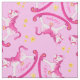 Tejidos ecuestres para que los niños puedan personalizar con su propio nombre. En este ejemplo se lee Harper. Caballos de mecedoras con estrellas y tu nombre, diseño de arte acuarela para jóvenes fanáticos de la equitación y niños que aman los caballos mecedores y los pequeños ponis. Tela en tonos suaves de rosa y amarillo. Pintado exclusivamente a mano en acuarela y diseñado por Sarah Trett para www.mylittleeden.com