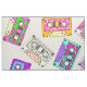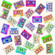 Estos modelos coloridos brillantes de neón frescos y retros de la vuelta de los años 80 y de los años 90 en las cintas de casete son perfectos para el individuo de moda y elegante. Su diversión e impresión juguetona es grandes para muchos regalos y ocasiones. Disfrute de este diseño divertido y de moda para su próxima compra; para sí mismo, sus amigos, o su familia.