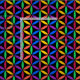 Diseño geométrico abstracto de círculos interrelacionados, colores arcoiris brillantes sobre fondo negro