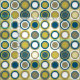 Tela Círculos del medio siglo Patrón azul amarillo Tan