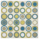 Esta tela de estilo retro y funky de mediados de siglo tiene círculos de color marrón, blanco, dos tonos azules y amarillos. ¡Seguro que es un atractivo para tu proyecto de costura o de tendedero!