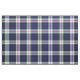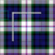 Tejido con el tartán de vestido Clan Baird, un patrón tradicional escocés de mantas en azul real y blanco, con acentos violeta, verde y negro brillante. El patrón se repite cada 4". Pedido especial de mayor o menor escala vía https://plaidwerx.com/contact.htm