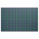 Tela con el tartán de caza Clan Leslie, de 1810. Patrón tradicional escocés plateado en azul real brillante y verde, con resaltados negros, rojos y blancos. El patrón se repite cada 1+3/8". Pedido especial de mayor escala vía https://plaidwerx.com/contact.htm