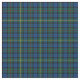 Tela con el tartán de Clan MacEwan, de 1906. Patrón tradicional escocés plateado en azul real brillante y verde, con resaltados negros, rojos y amarillos. El patrón se repite cada 1+3/8". Pedido especial de mayor escala vía https://plaidwerx.com/contact.htm