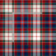Tela en el tartán formal de vestir para Clan MacFarlane, un patrón tradicional escocés de yeso de 1930 en rojo brillante, azul real y blanco cremoso, con acentos verdes del bosque. El patrón se repite cada 4". Pedido especial de menor o mayor escala vía https://plaidwerx.com/contact.htm