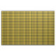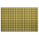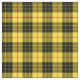 Tela con el tartán de Clan MacLeod. Patrón tradicional escocés plateado en amarillo brillante y negro con resaltados rojos. El patrón se repite cada 1+3/8". Pedido especial de mayor escala vía https://plaidwerx.com/contact.htm