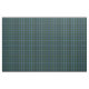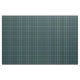 Tela con el tartán de caza de Clan MacRae, de 1820. Patrón tradicional escocés plateado en azul brillante y verde, con resaltes rojos, blancos y negros. El patrón se repite cada 1+3/8". Pedido especial de mayor escala vía https://plaidwerx.com/contact.htm