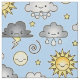Este patrón de tela incluye una variedad de adorables iconos del clima con caras sonrientes o frías al estilo kawaii: un sol, luna, nube blanca, nubes de lluvia, nubes de nieve, nube de tormenta relámpago y estrellas. ¡Perfecto para los entusiastas del clima, meteorólogos, acosadores de tormentas y científicos del clima!