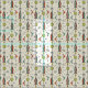 Mi ilustracion vectorial original de los cohetes retro Atómicos Kitty, satélites, lunas, átomos, starburst, galaxias, pulsares, ondas sonoras y estrellas de tiro, en blanco roto, bronceado, oro, aquamarina, naranja oscuro, negro y un toque de rosa.