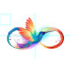 Hermoso tatuaje infinito con colibrí arco iris. Ave arcoiris.