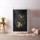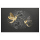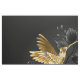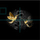 Colibríes con joyas negras y doradas sobre un fondo gris adornado con plantas. Aves de joyas. Ave dorada. Ave dorada.