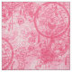Esta tela inspirada en el vaivén de vapor está impresa con un patrón de collage de diagramas vintage de relojes y engranajes en un esquema de color rosa.