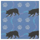 Una silueta de sombra Color del borde áspero en posición clásica con un fondo azul decorado con huellas de pata y huellas en tonos grises, rosas y azules. Diseño de Diane Blackman. El mismo diseño está disponible con otras imágenes de perros divertidos.