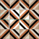 Diseño de tejidos modernos con rayas geométricas en tonos marrones cálidos con un contraste de negro.