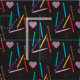 Una tela divertida para profesores o artistas con el patrón de lápices de colores revueltos, garabatos de corazones rosados y contornos solares amarillos. Todo esto sobre un fondo negro, falso de pizarra . Perfecto para crear almohadas en aula, cortinas y más. © ArianeC Ilustraciones-Todos los derechos reservados