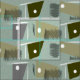 Tela moderna del bumerán de los mediados de siglo en gris y trullo en un fondo del verde del aguacate. Líneas de los mediados de siglo clásicos y modelo de estrella de intersección.