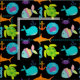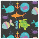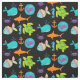 ¡Los niños de la tela amarán, ofrecen un fondo negro con las criaturas incluyendo una ballena azul, ballena del mar del bebé de pescados púrpuras, rayados, del caballo de mar azul, de la tortuga de mar verde, del cangrejo púrpura, del tiburón anaranjado, y de un ancla del naranja y del oro! ¡Los niños que aman el océano y a las criaturas que viven allí amarán esta tela de la impresión de la diversión!