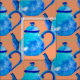 Una bonita ilustración acuática de una colorida tetera azul en un bonito estilo de ilustracion. Genial y lindo para los amantes del té.
