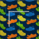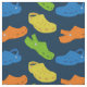 Pon tu mejor pie hacia adelante mientras diseñas tu próximo proyecto de costura con esta divertida tela con estampado. El material presenta ilustraciones de zapatos de plástico blanco en amarillo, verde limón, naranja y azul brillante sobre un fondo azul marino, lo que lo hace perfecto para cualquiera que prefiera un estilo de vida relajado e informal.