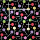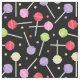 Tejidos coloridos con temática de caramelo, adornados con lonas dulces en un color de fondo negro