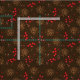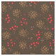 Tela rústica de color marrón oscuro con un patrón forestal de pinos de abeto y bayas rojas