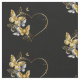 Marco dorado en forma de corazón, decorado con oro, joyas y mariposas blancas sobre fondo negro.