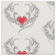 Corazón rojo pintado de forma artística con alas de ángel gris, decorado con un contorno suave negro.