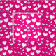 Tejido en un patrón disperso, efecto de sketch de tiza, corazones blancos, en un fondo rosa fucsia profundo