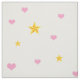 Corazones rosados dispersos y estrellas amarillas doradas sobre tela de fondo de color blanco cremoso. Disponible en muchos tamaños y varios tipos de tela.