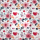 Un nuevo diseño moderno y romántico de rosas rosas rosas y corazones con hojas florales. una bonita tela para celebrar el amor y el el día de San Valentín.