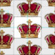 Brillante 3D dorado y pulga roja-de-lis crown gráfico, patrón de repetición, color de fondo personalizable