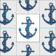 Silueta azul del ancla del tartán de la tela escocesa.