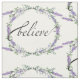 Un diseño romántico y elegante con la palabra "creer" enmarcada por eucalipto y lavanda pintada en acuarela.